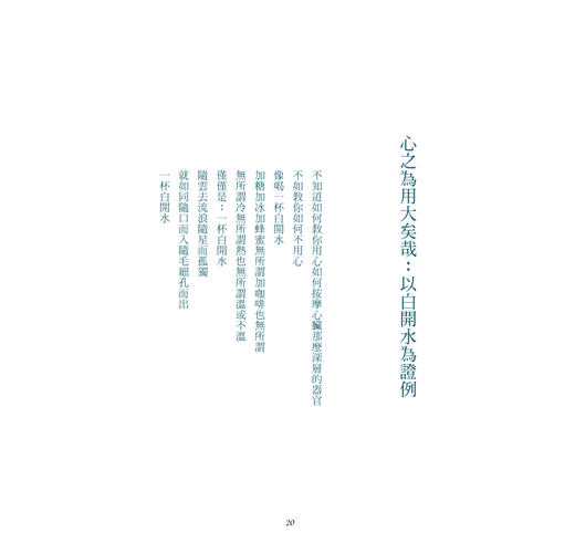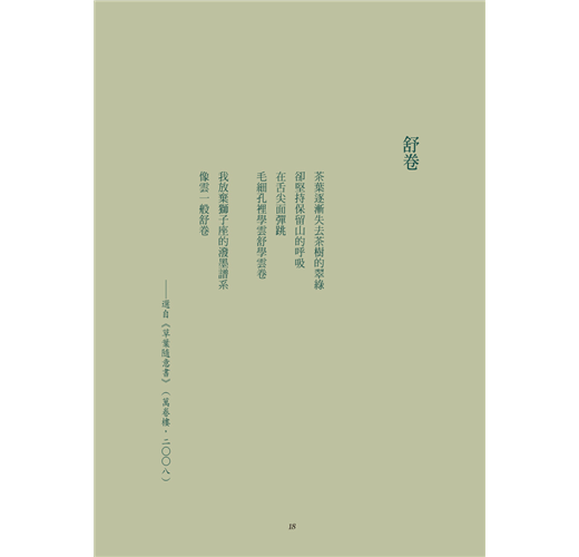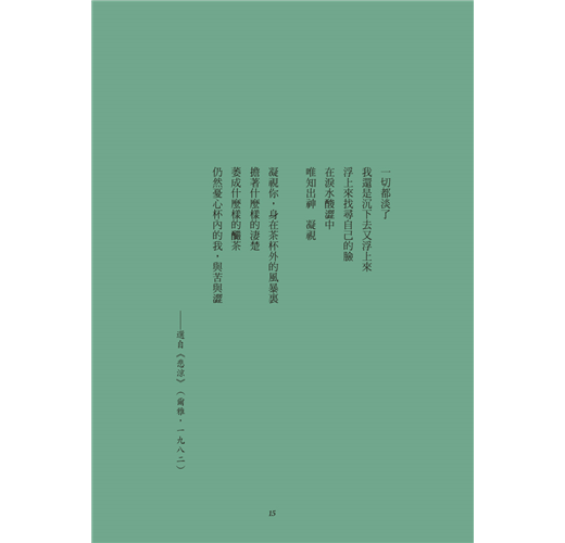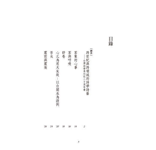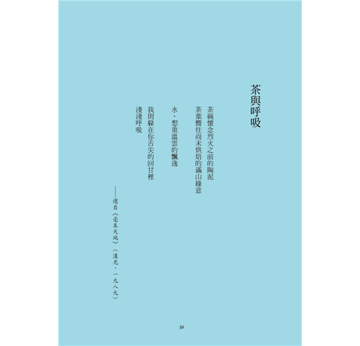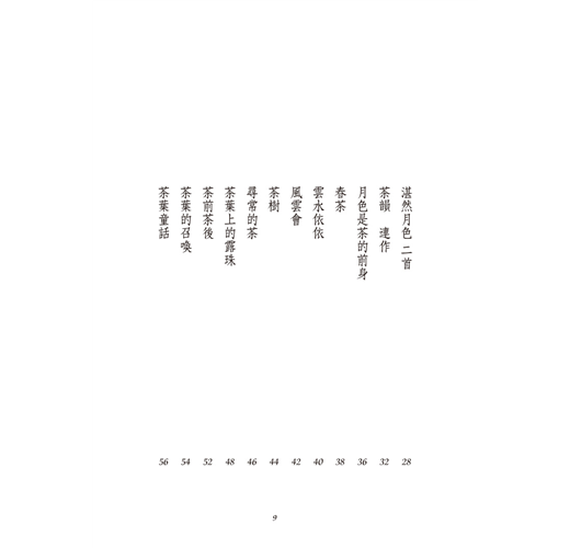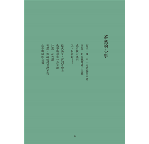 以茶為詩思及靈感的來源,可見作者的生活情趣,以及蘊藏在品茶之間的哲思。