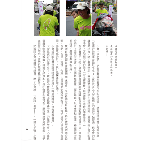 和小寶爸媽十多年前曾是同事的機緣而捷足先登「參與」《大腳小腳,走讀台灣》行程,聯繫我所認識的「議題現場」安排參訪住宿,通知散居在各地的「公民記者」朋友就近採訪報導。