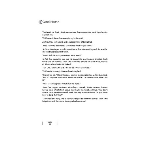 「大人的書也有些是有圖的,有圖的不一定比較好。有時候沒有圖,看了書以後,自己想像,更好玩。」高個子說:「你自己決定,你要聽哪一段?」