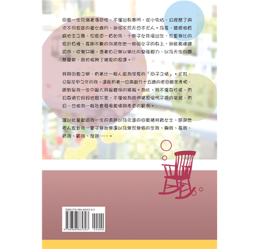 至於,是在甚麼動機之下,我想為母親寫下了這本書呢?其實,這背後有著太多太多的因素在促成。當然,讀者們若看完了本書所有內容之後,自然便能夠完全理解我的寫作動機。或者,在看完本書第一章的內容之後,也能夠望出一些端倪。