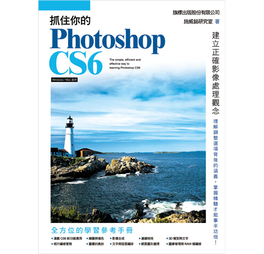 【旗標】公司的『抓住你的 Photoshop』一書素有口碑, 內容除了對 Photoshop 的各項功能有鉅細靡遺的介紹, 更融入大量的實務經驗、業界用法、基礎知識與觀念的建構, 紮紮實實、絕不含混。例如:平面設計人員都想知道的色彩管理、色彩校正、數位打樣;數位影像人員最缺乏的螢幕校色、編修流程、數位列印與輸出校色的實務做法…全都完整涵蓋。我們不侷限於操作的說明, 更會適時講解該功能的使用時機或設計的相關背景。除了教你操作, 還建立你獨立思考創作的底子, 因為數位藝術的領域, 視野決定格局、思考甚於操作!