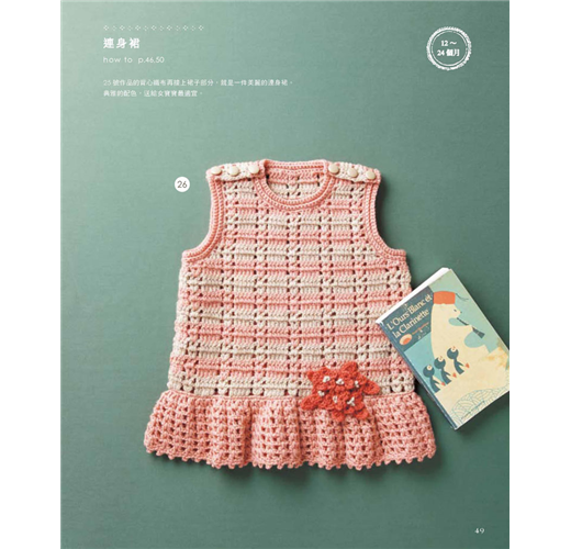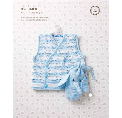 隨著寶貝的生長,從0到12個月,再從12個月到24個月,小寶寶到大寶寶,通通都有衣服可以穿!花樣獨具又可愛,讓寶寶穿上你們親手鈎織的服裝,走到哪裡都亮眼絢麗,不用買名牌,也不用擔心買到含有有害物質,傷害寶寶柔嫩肌膚品質不佳的商品,親手動手做,安心安全又特別!
