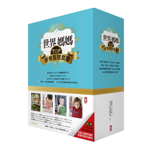 1. 世界媽媽教養系列,以各國媽媽特殊的教養觀為切入點,題材特殊。本系列書出版《德國媽媽這樣教自律》、《日本媽媽這樣教負責》、《猶太媽媽這樣教思考》、《美國媽媽這樣教自信》四書,成為2012親子出版市場世界媽媽教養指標。