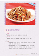 2 另起鍋倒植物油燒熱,放蔥白段、薑絲爆香,放入肉絲、紅蘿蔔絲炒至變色,加黑木耳絲,放入料理米酒、高湯、醬油煮滾。