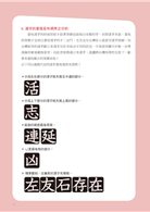 日文的漢字一般而言都分有「音讀、訓讀跟特殊發音」等三種唸法,而且有時候會隨著唸法有不同的意思。例如漢字「嗅」當作名詞「嗅覺」這個意義解釋時,唸音讀「kyu.u.ka.ku」,但當做動詞「聞味道」這個意義解釋時,則唸成訓讀「ka.gu」。本書中每個漢字都依其發音規律,分門別類的整理好,並有清楚的意義解說,讓你一看就懂。