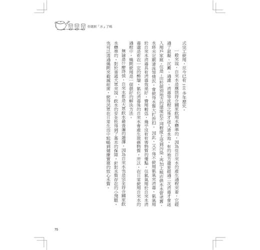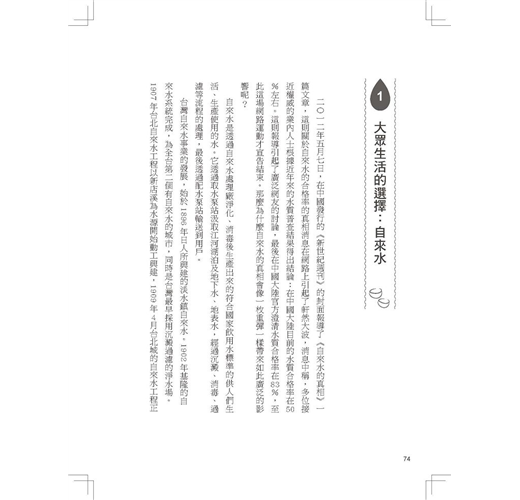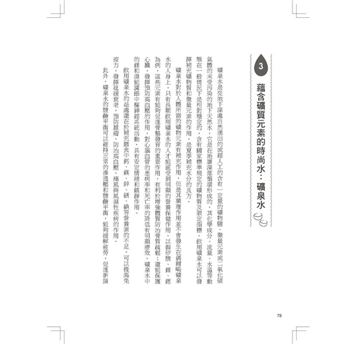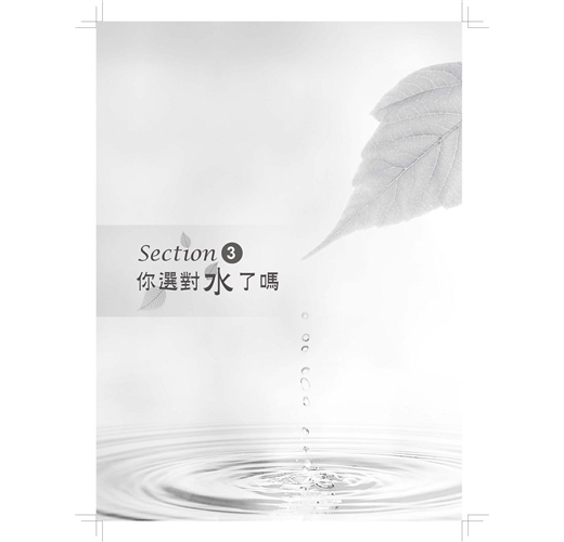 而今,看到我對於水的一些見解可以集結成冊付梓出版,心中十分喜悅。也十分慶幸,好在能給更多的人提供關於喝水的正確的、健康的知識,亦為時不晚。