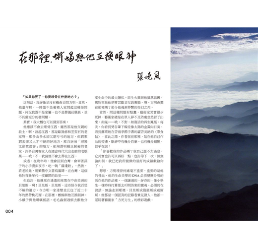 當然,問這種問題有點蠢,藝術家其實很少死掉,藝術家總是在眾人猝不及防處忽然冒了出來,如鬼──哦,不對,如復活的再生鳳凰。每次,你看到梵谷筆下燦炫像太陽的金黃向日葵,看到蘇東坡在苦雨季節手書的澀苦美絕的〈寒食帖〉,當此之際,作者恆在那裡,站在他自己作品的旁邊,眼神中有幾分自豪,也有幾分靦腆,似乎在說: