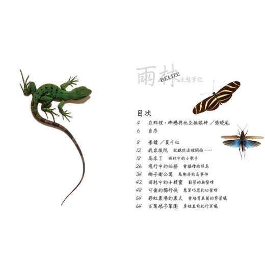 早先視寫作為恐怖夢魘的我,現在初嚐翱翔於文字天空的滋味,像是破繭羽化的蝴蝶,在此,我要感謝宇宙光的總幹事林治平林哥,給我機會在《宇宙光》雜誌上分享我的觀察心得,也要謝謝他的夫人名散文家曉風姐,在百忙中賜序,還有宇宙光文字部所有同仁,更謝謝多年的摯友千紅幫忙潤稿,是她帶我尋回寫作的信心與樂趣,謝謝內人淑卿幫我管理木工廠、身兼我的攝影助理,謝謝姪兒立謳在貝里斯時幫忙找蟲,充當攝影小助手,謝謝表弟林敬原在台灣幫忙選購攝影器材,資助珍貴的鏡頭,最後要謝謝台灣駐貝里斯的農業技術團技師鄭坤木先生,專攻農業病蟲害的他在工作之餘抽空為我檢視校訂,大大提升了本書的正確性。