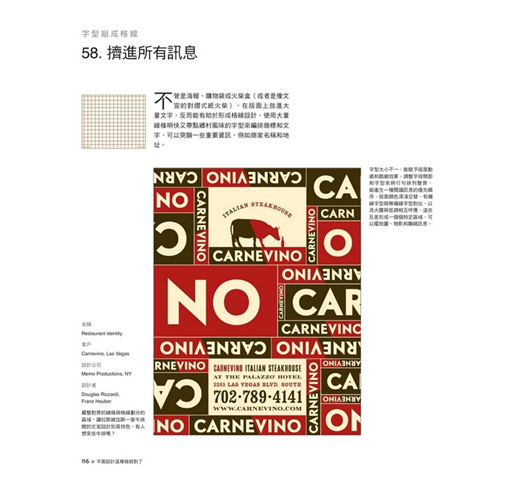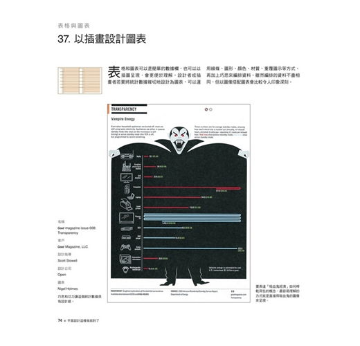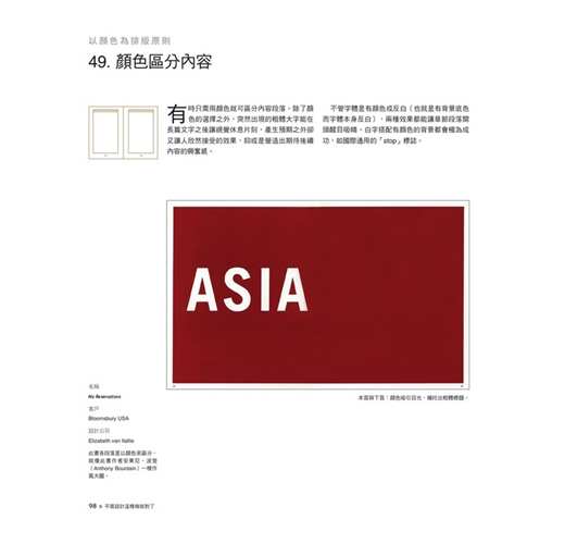 ★100種設計原則,涵蓋字型的選擇、字距與行距的設定、版面的平衡與節奏、顏色與圖像配置等的運用