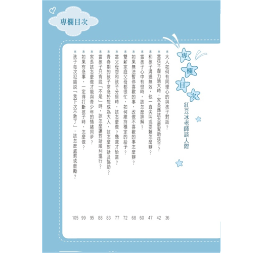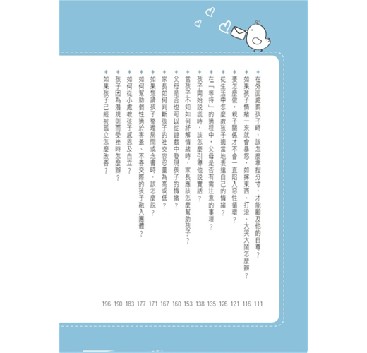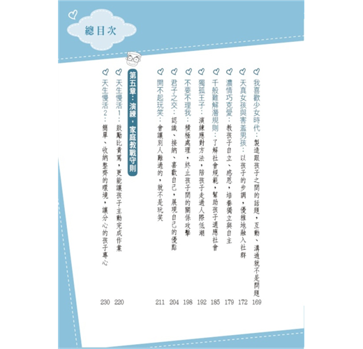 舉凡如何突破親子互動模式的困境、大人的情緒管理、孩子面對壓力時家長的因應對策、人際互動訓練及親師溝通的技巧、霸凌事件的防範和處理、以及老師的教學困境等等,本書都有深入淺出的探討。