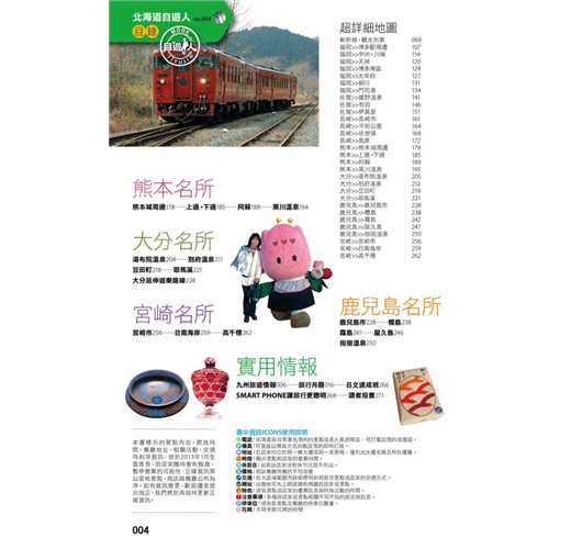 本書依九州七縣分區,內容不僅涵蓋豐富的吃喝玩樂景點,旅途中所需要的各種小撇步、小提醒與豆知識,則讓旅遊更加深入而流暢。再加上詳盡的交通指南,從城市間的大範圍移動到各景點間的交通銜接,無一遺漏地完整介紹,有了這本全方位的旅遊指南,漫遊九州將不再是難事。