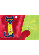皮皮貓穿上他最愛的——有四顆大大的、圓圓的、有顏色的帥鈕扣襯衫去逛街。