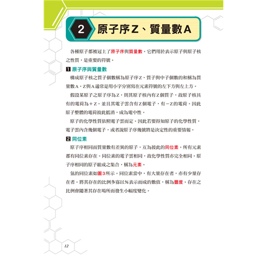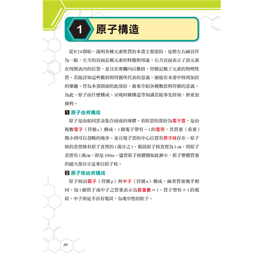 本書是以文章說明結合漫畫的方式來介紹化學元素,除了介紹基本的元素特性以外,也讓各位讀者了解元素被發現的過程和歷史。比起死記各個元素的代號和性質,使用輕鬆有趣的方式更能集中精神、加深記憶力!