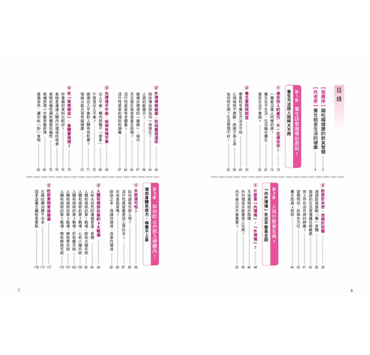 另外,此書還提出環境會影響健康的觀念,當環境遭到破壞,大自然的劇烈變動就會影響人的健康,比如:沙塵暴、城市中的空氣污染,使得罹患呼吸道疾病的人愈趨增多,因此想要有健康的身體,環保亦是至關重要的一環。
