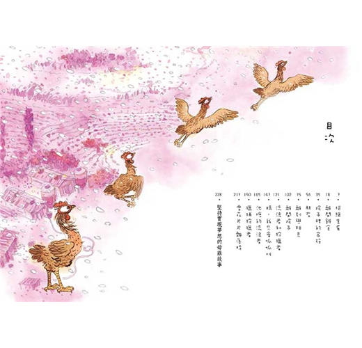 沒錯,《想飛的母雞》一書的重點,並不在於單純地描述一隻奇怪的母雞養育野鴨長大的故事,而是藉此來表達如何追求自身的存在價值,並活出自己的人生,進而對生命最基本的意義,做出更深入的探討和反省。