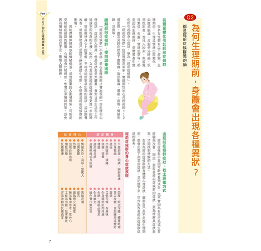「經前症候群」不是病,是在生理期前才會出現的一些症狀,症狀因人而異,但是症狀若太嚴重,會對生活和工作造成不同程度的干擾。因此,女性若能對經前症候群有更進一步的瞭解,先做好身心上的準備,平時也能針對自己的症狀,加以調養改善,就能幫助自己舒適平靜地渡過生理期,不過度受經前症候群影響。