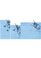大概是天將亮未亮之際,陰濛濛的,大大小小的雨珠趴在窗外,好像等著看一場精彩好戲。大家都在睡覺,只有一隻小母雞醒了,牠打翻藍色的顏料,弄得天下大亂。幸好,出現奇妙的轉折,一切又恢復秩序和平靜,嗯,至少藍色顏料的危機解除了。至於天下是否永遠太平,那就是另一齣戲了。