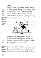 書中主角葛瑞在第一冊提到,他不是寫日記(雖然書名是《遜咖日記》),他是在記錄一些生活事蹟,未來若成名,可以提供大眾認識他的發跡史。以日記形式寫故事,我不得不說,葛瑞很聰明地訂出他寫作的框架與內容。日記是自己的,要怎麼說自己的故事都可以,有隨手抒發的自由,卻也有完整的故事結構。