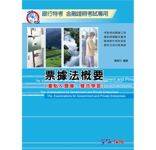 ●考點掃描關鍵立現 關鍵考點快速掃描,讀前預習或考前複習皆適宜。●重點解讀觀念釐清 各章內容完整解讀剖析考試重點,更將易混淆的觀念以表列方式幫助考生釐清。●題庫解析破除盲點 通盤了解各章內容後,立即附上試題供考生縯練,更有詳盡的解析。●最新法規完整蒐錄 蒐錄票據法相關法規,方便考生查閱。