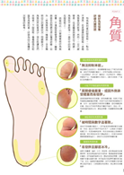 POINT 2角質 若是健康的腳,老廢角質會自然脫落。一旦身體出現任何問題,角質就會緊緊附著在腳底板上。