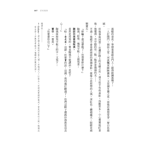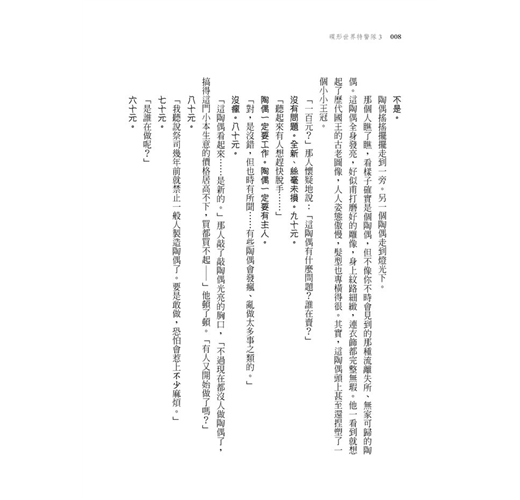 先是一位矮人慘遭硬如石頭的麵包重毆致死,接著,幾乎從不進食的貴族老大竟遭人下毒、受魔法文字控制的「陶偶」紛紛自殺……警衛隊追蹤每一個線索,努力還原這張古怪的犯罪拼圖。據說垂死之人最後看到的畫面會烙印在眼中,這會是他們破案的最後希望嗎?