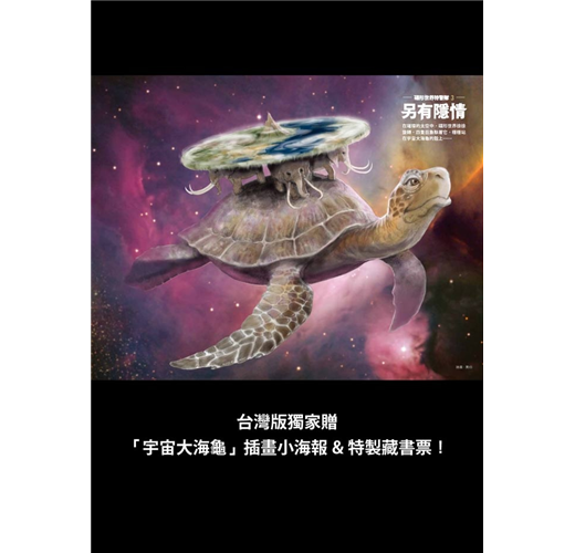 在璀璨的太空中,碟形世界徐徐旋轉,四隻巨象馱著它,穩穩站在宇宙大海龜的殼上……