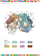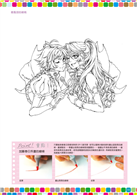 在顏色方面,每張作品都會收錄色彩計畫表,每款顏色都確實標誌COPIC麥克筆的色號,讀者可以藉此學習配色的技巧。