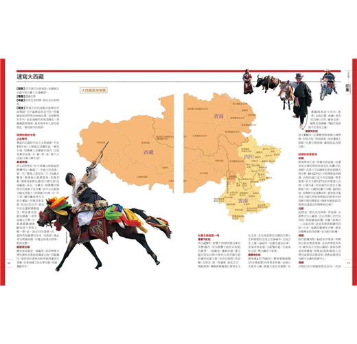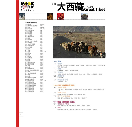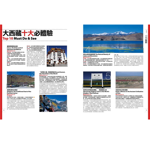 這本新版的大西藏首先從「大西藏十大必體驗」、「聚焦藏族,面貌萬千的歌舞、服飾、宗教、飲食、民居風情」主題切入,提綱挈領地帶領讀者快速進入西藏的世界。接著「攝影攻略」、「世界遺產」等單元,不論行前準備或旅行途中,都能給予讀者最佳指引。至於全本書的重頭戲「分區導覽」部分,分為「西藏」、「青海」、「四川(甘孜藏族自治州)」以及「雲南(迪慶藏族自治區)」四大部分,並介紹八條古往今來最具代表性的進藏路線,深入大西藏最菁華的景點。