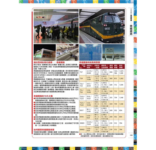 特別是2006年全線通車的青藏鐵路,更為西藏之旅開展嶄新的一頁,除了昔日從四川、雲南、青海甚至尼泊爾前往西藏的7條路線外,這個全世界最高的鐵路路線不但大大縮減了從西寧前往拉薩的時間,更是人類鐵道工程的極限之作,從此遊客可以以便捷、舒適的方式前往西藏,並將沿途最美的大自然風光盡收眼底!