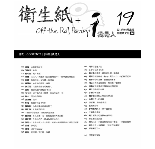 反核已成近來最炙熱的全民議題,身為時代見證之一的《衛生紙+》自然不能缺席。本期除了林蔚昀、宋玉文、沈眠、蔡仁偉、陳以恩的諷喻詩篇,也刊出劉天涯的書信體劇作──在反核運動中多次搬演的〈六個尋找作者的輻射人〉。同時,詩人也從關廠工人臥軌抗議事件中、江翠國中護樹行動中,見出這個國家只有總統大人、警察大人,卻沒有「夢想大人」的殘酷現實。這些,都有詩為證。