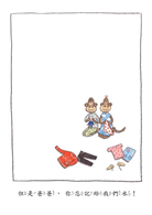 除此之外,瑪麗安杜布對畫面的安排,更是充滿巧思。她首先讓讀者看到的是完全空白的房間,只有孩子們在畫面中,隨著故事的演進,畫面中的物品一點一點增加,更勾起讀者的好奇心,讓人不禁期待:下一個會是什麼?不只製造出許多驚喜,更讓故事讀來節奏分明,充滿趣味。而畫面中的小貓也非常吸引人注意,繪者巧妙安排小貓出現在各個畫面,讓孩子可以邊閱讀邊和牠玩躲貓貓,而小貓造成的前後呼應效果,也讓讀者感到彷彿是小貓在說故事。