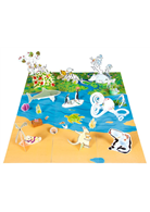 大膽撕下書頁、摺出痕跡、畫上喜歡的顏色與花樣,剪一剪、黏一黏,組合成有小魚悠游、有大白鯊威風凜凜巡迴其中、有大海怪出沒的藍色大海!或是有袋鼠跳躍、負鼠吊掛在樹梢,針鼴與袋熊在綠色草叢中玩耍的澳洲黃沙大地!把一個一個小物件剪下、彩繪,黏貼於書後附上的大型地圖,就能創造屬於自己獨一無二的彩色世界!