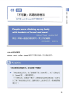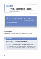2完全解答學生時代的疑問:諸如「為什麼bread是不可數名詞?」「為什麼中文的『在』英文有at、in、on…等說法」……學生時代不懂的種種疑問,都將獲得解答。