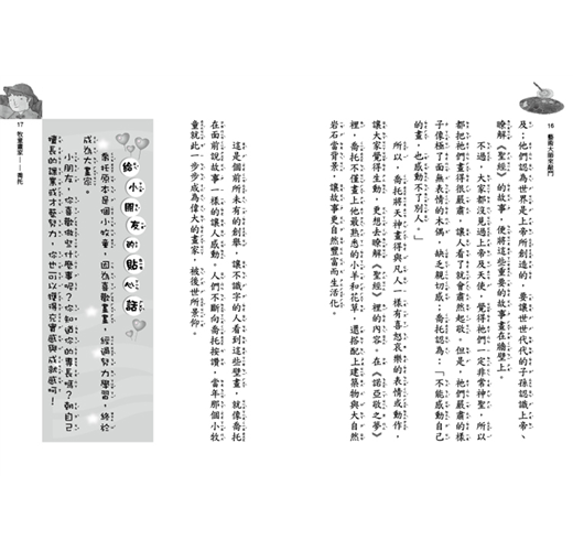 這本書記錄著三十位西方視覺藝術家的有趣小故事,希望小讀者們能透過文字的分享,體會到藝術與生活的緊密相連,更能欣賞這個美麗的世界。