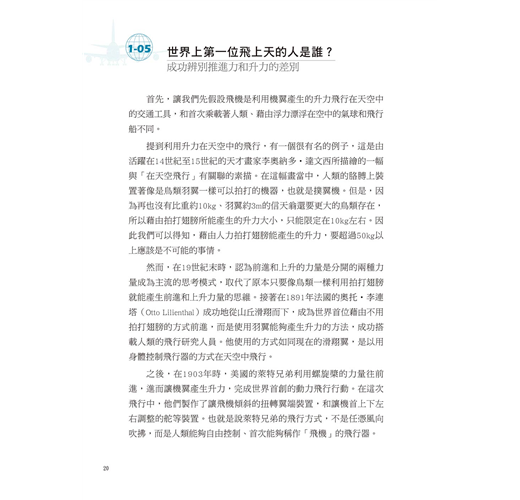 1.探討關於飛行的各種原理以及飛機各個部分的機制與結構,充滿扎實的飛機知識。