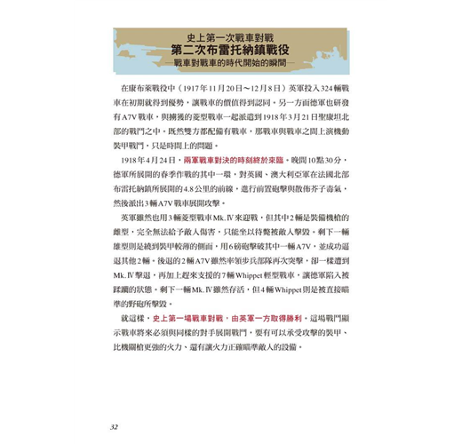本書將以世代進行分類,從世界第一輛戰車到最新的高科技戰車,用珍貴的實景照片與豐富圖解,介紹50輛具有革命性意義的戰車。