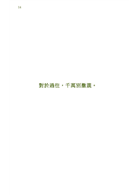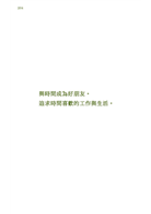 無論是從頭一頁頁慢慢讀,或者是放在桌邊,一有空檔就隨意翻閱一則,都好。這本書,以及它所透露的正面、積極、冷靜又熱情,是要慢慢浸潤地深入成為我們生活的一部分。