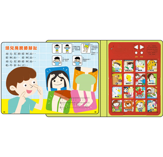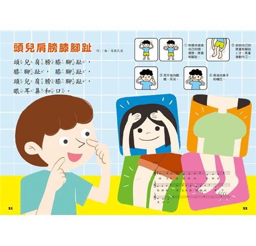 書中兩首標示完整的帶動唱動作,讓寶寶跟著節奏唱唱跳跳,刺激孩子的全腦開發。