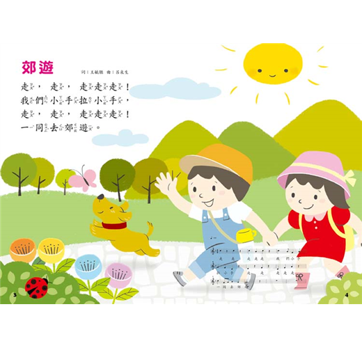 搭配大的字體將中文歌詞標示完整,版面豐富繽紛而無閱讀壓力,讓孩子輕鬆歡唱。