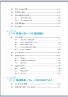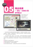 本書透過十五個精美網頁設計實例,藉由簡單明瞭的操作與詳細的解說,讓網頁設計初學者可以立即掌握設計原則與方法,並能透過嵌入的推文、Google+徽章與+1按鈕,方便瀏覽者快速推廣網站與使用社群服務,另外還講解了主流的Div+CSS網頁佈局及最新的HTML5設計技術。