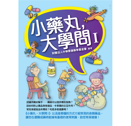 《小藥丸,大學問I 》以活潑易懂的方式介紹各類常見藥品的成分、功效;與使用所需的注意事項;並搭配常見疾病(例如皮膚病、眼疾等)加以輔助解說,希望一般人也能具備基礎藥用常識,降低不必要的藥物傷害與浪費。
