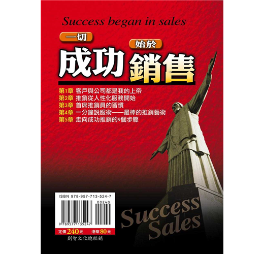 《一切成功使於銷售》是作者以其多年在傳統事業奮鬥的豐富經歷及卓越成就,深入剖析直銷事業神奇的生命力,字字珠璣,發人深思,是有志創業及夢想成功者的指南針;閱讀本書,無異在創業及邁向成功的道路上有貴人相助!