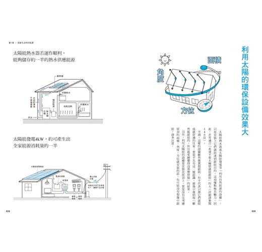 作者以33年的自家中古木造建築為改建實例,進行「提昇斷熱性能」「遮蔽日照」「改善通風」「改用太陽能熱水器」等改造工程,並且列出改造前改造後的差異。成功將屋齡30年以上的舊屋改建成冬暖夏涼的環保綠住宅。