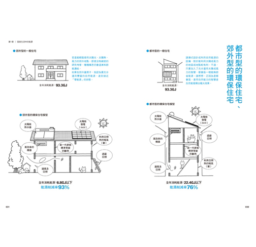 書中幾乎網羅了所有與綠住宅有關的主題,並盡可能地以具體重點來表示。例如節能或節電的效果,以及能夠得到怎樣程度舒適感的室內環境等,皆盡量以具體化的資訊表現出來。透過這樣的呈現方式方便進行資訊比較,讀者也可以視自己的需求,針對規畫的內容進行優先順位的排序。