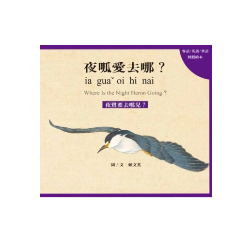 《夜呱愛去哪?》(夜鷺要去哪兒?)是新竹教育大學臺灣語言與語文教育博士賴文英小姐,窮二十餘年鑽研工筆花鳥繪畫的精湛功力,融合她在語文教育的專業訓練,以深入淺出的文字,藉國人熟知的夜鷺 (夜呱)為主角,串連我們日常生活中常見的18種鳥類,以「夜鷺要去哪兒?」為主題,展開牠一連串尋找棲身地的旅行與感人見聞。《夜呱愛去哪?》透過繪本生動、易讀、易學的特色,融合在地生活常見的鳥類,展現主角在追求理想的過程中,遭遇到的困難,以及牠們不畏艱難的毅力,同時也經由鳥類生態的創作故事,不著痕跡地呈現台灣客家族群生活環境與文化的特色。本書不僅首創將工筆繪本結合客(附客語拼音)、英、華語對照的文化創意結晶,更是一本值得每一個年齡層與不同族群都可以閱讀、賞析與典藏的繪本。