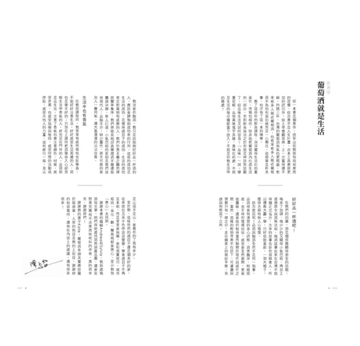這是一本有本土特色,而且將葡萄酒帶到一種絕妙新境界,自然融入台灣每日生活並增添美麗色彩的好書,我誠摯推薦。