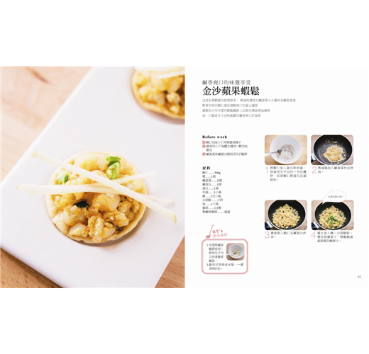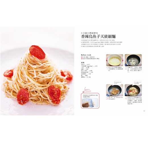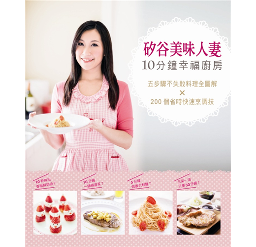 《10分鐘五步驟日日好料理》10秒鐘鮮奶油、5分鐘烏魚子義大利麵、2步驟焦糖鮭魚排、無國界加州風壽司比薩、反轉蝦仁燒賣、偷吃步上海菜飯、低脂瘦身優格蜜酥雞柳條…
