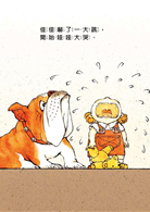 第一次看到這本書的封面,瞬間我噗哧一聲笑了出來,因為兩位主角正經八百的站在畫面正中央,兩者身體比例的不協調帶著一種說不出來的詼諧感。我津津有味的想著:「這麼大一隻狗,和這麼一個小人兒,會發展出什麼樣的故事呢?」