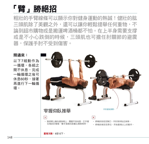 我已經開始依照書中的計畫進行訓練,並且發現書裡的動作一點都不含糊!只要照著練習,不僅可以鍛鍊肌力,又能獲得有氧運動的功效。相信在數週之內,我就能看見鍛鍊的成果!--- Brian Flynn