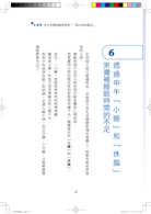 「休腦」是高效率的大腦休息。在工作間歇中,穿插片刻休息,或是使用非慣用手,讓左、右腦輪流休息,大大減輕腦部的疲勞。